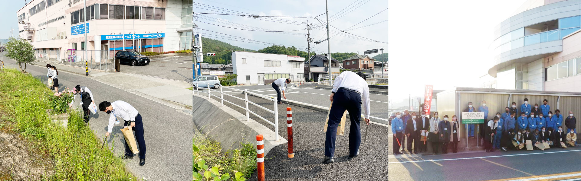 地域に根差した企業として、地元へ貢献できることは何かと考え、毎月15日に清掃活動を行っています。