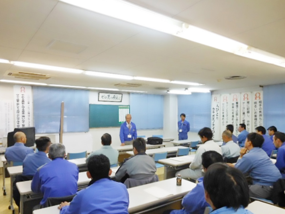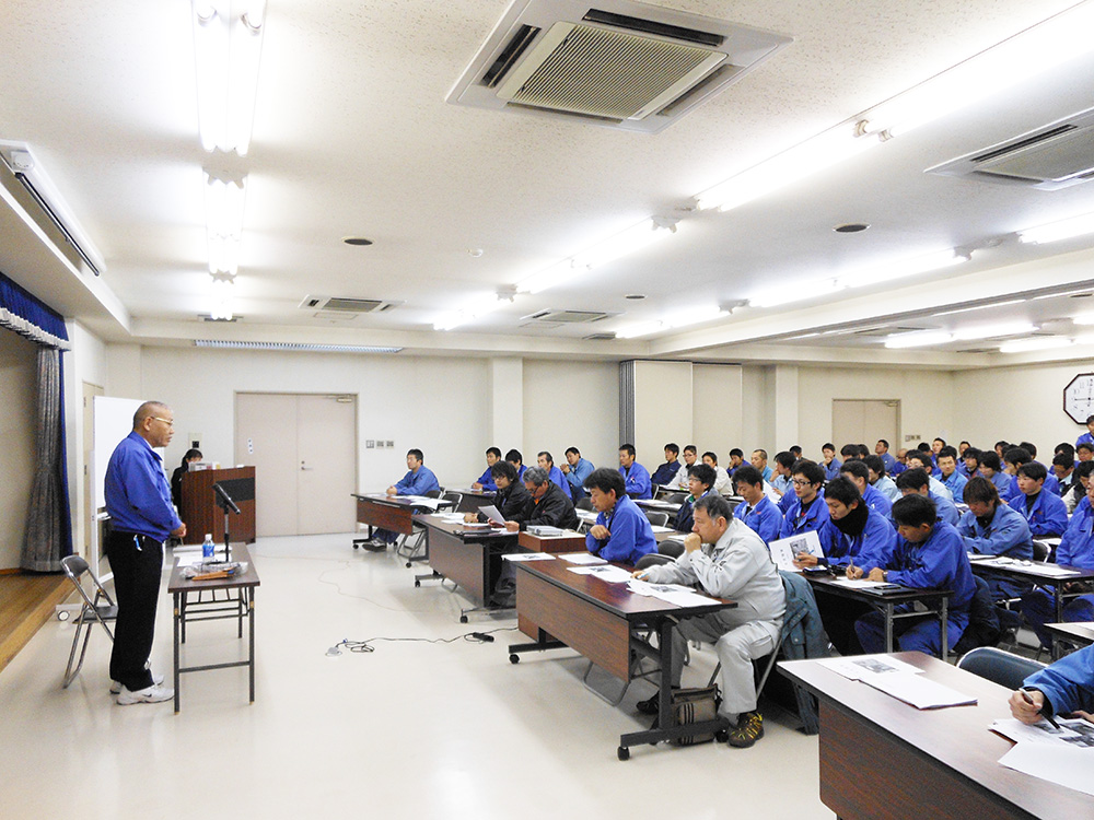 スキル向上による成功体験はさらなる意欲の向上につながると考え育成計画に基づき、 組織的に計画的に研修・教育を実施しています。 この研修を通じ「技術力」はもちろん「人間力」「能動力」を向上させることで、 更なる飛躍を期待しています。