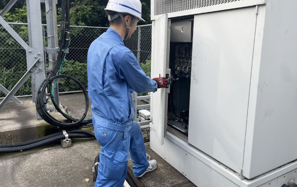 運用中携帯基地局設備の故障時及び災害時には、緊急で現場へ駆けつけ復旧作業にあたっています。